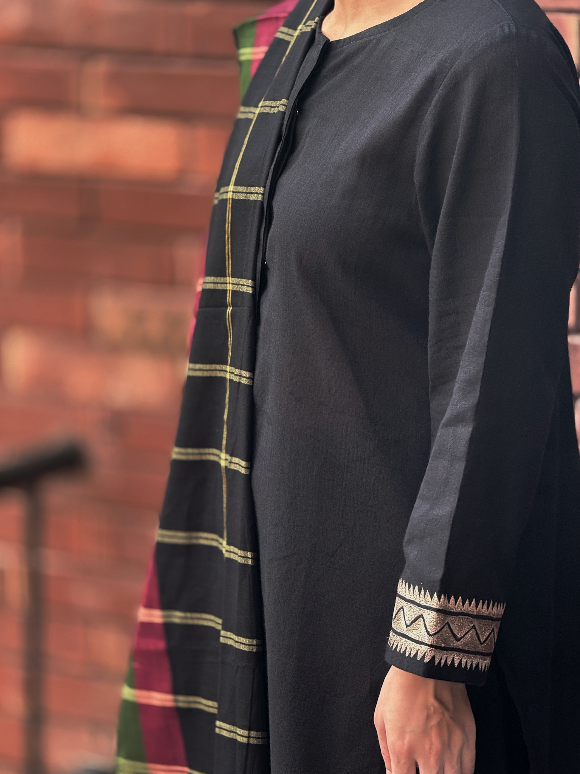 Unstitched Black shirt cotton khaddi (with dupatta)